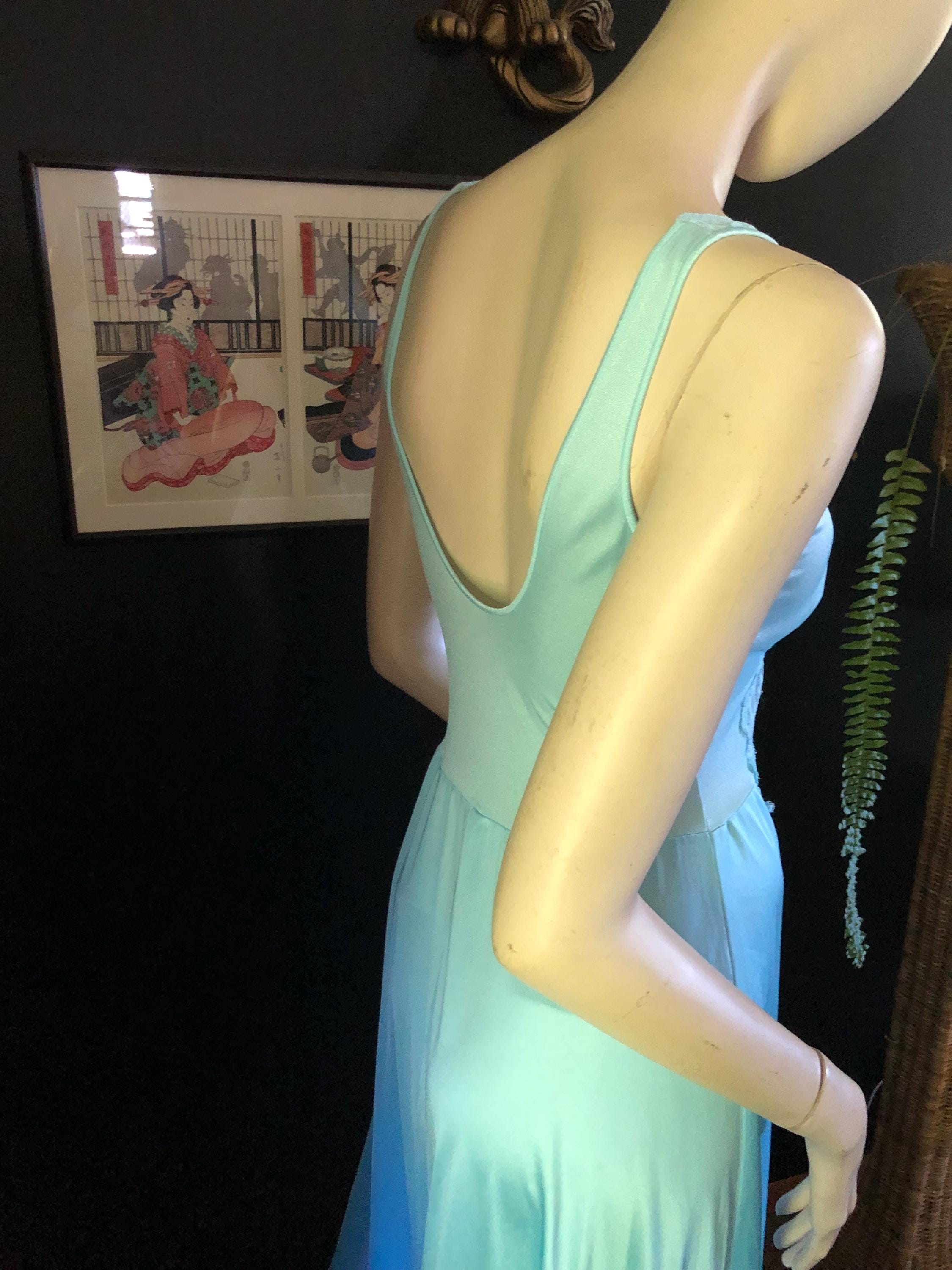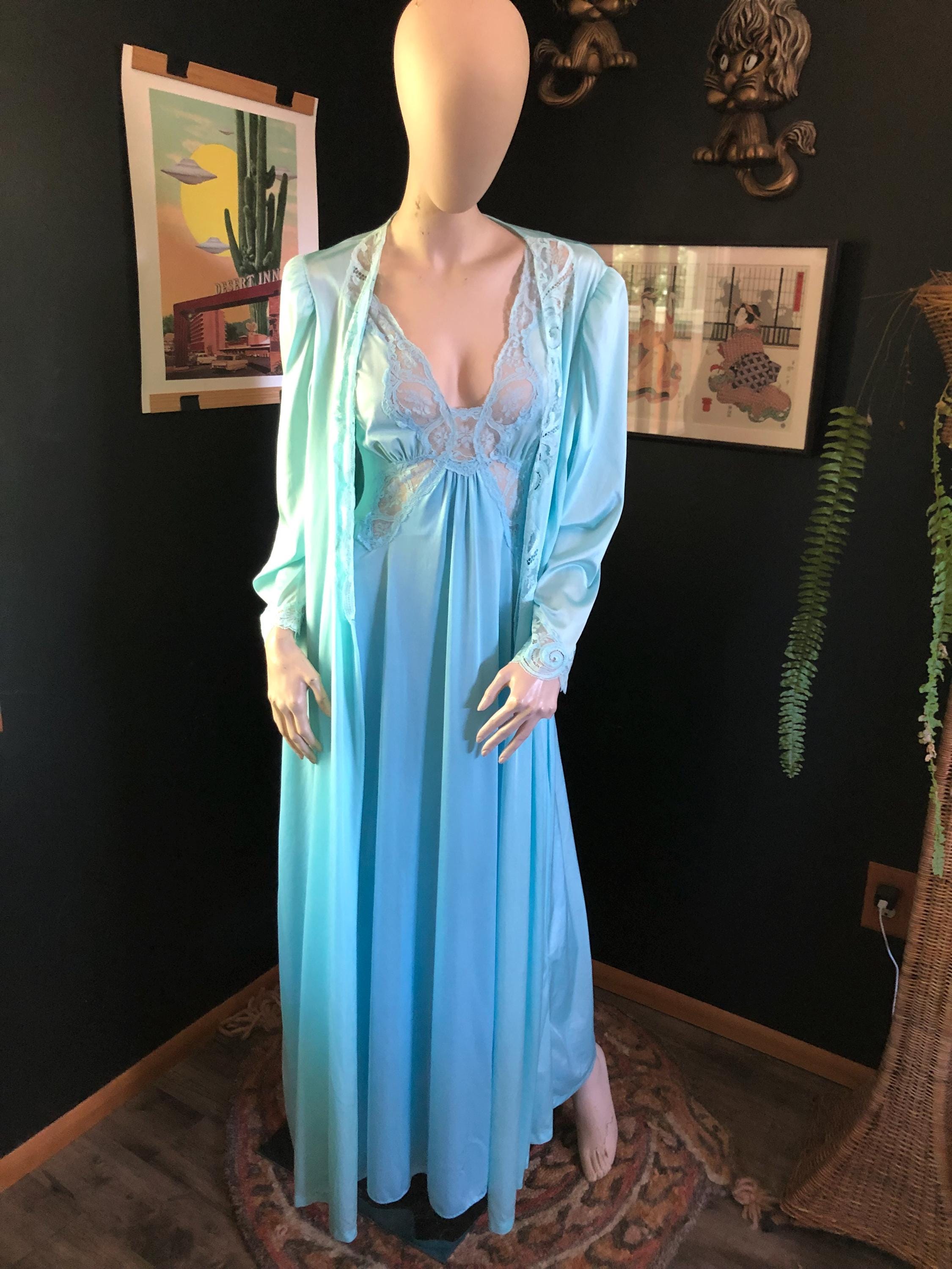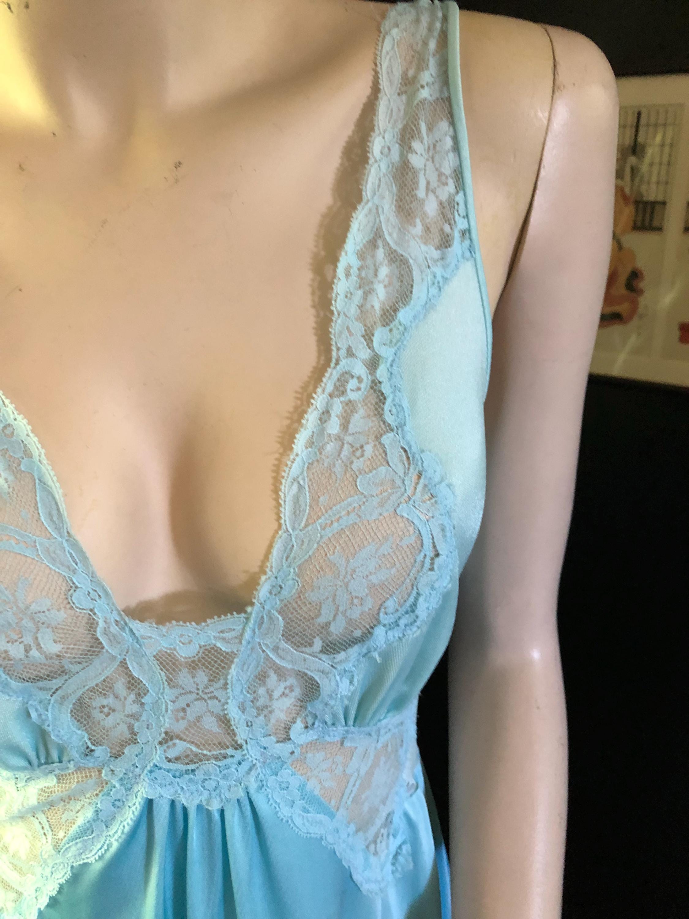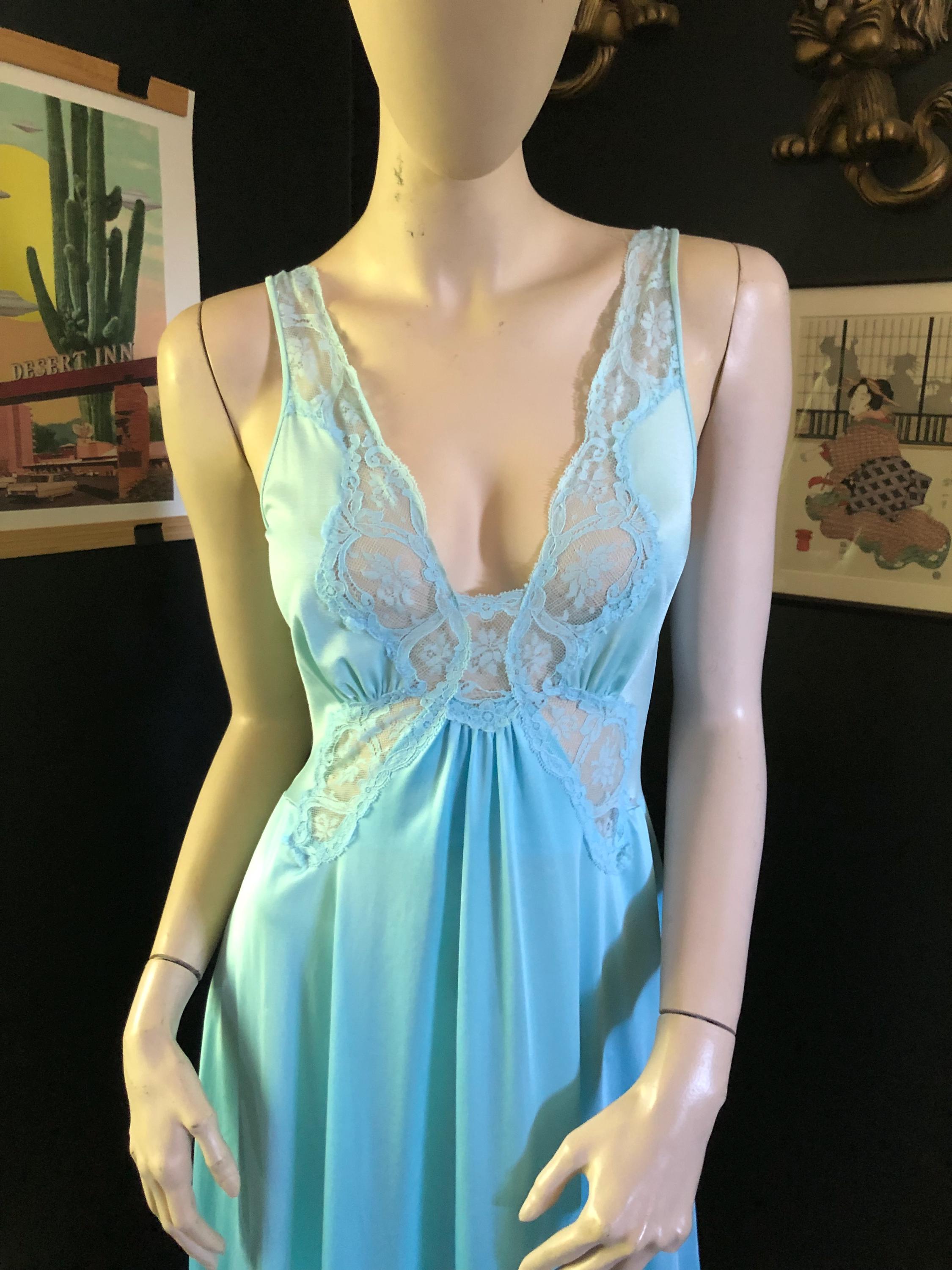 Powder blue Olga Bodysilk Nightgown with lace bodice and straps. Excellent condition. Sold separately but matches great with the robe in the picture.